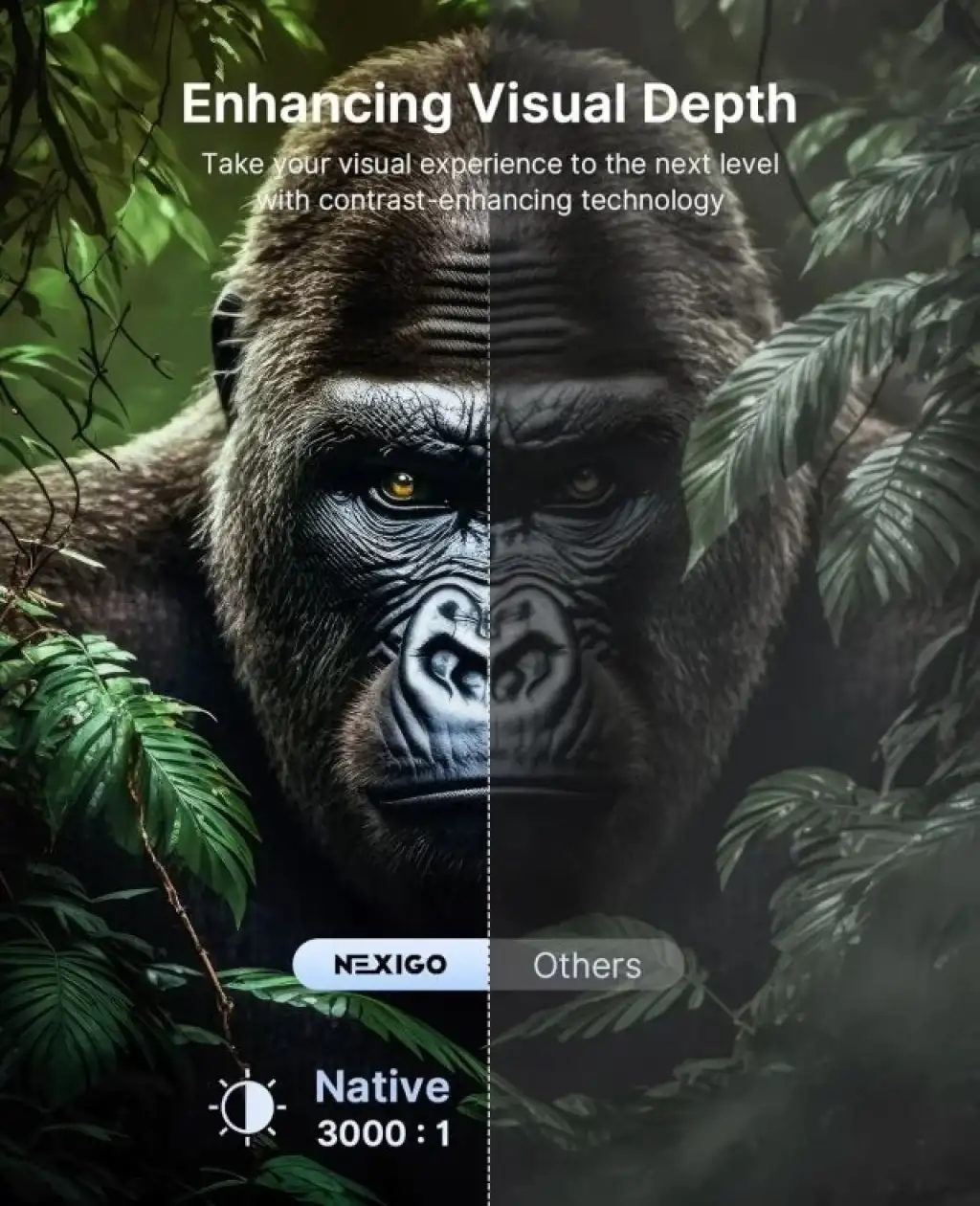 Devasa Ekran: NexiGo PJ40 Ultra, etkileyici 300 inç ekrana kadar yansıtır. Yakınlaştırma işlevi sayesinde projektörü hareket ettirmeden ekranı %60'a kadar kolayca küçültebilirsiniz. Otomatik dikey trapezoid düzeltme özelliğiyle her seferinde mükemmel seviyede bir projeksiyonun keyfini çıkarabilirsiniz. Sinema salonlarıyla yarışacak kadar büyük bir ekranla film gecelerinizi dönüştürün.