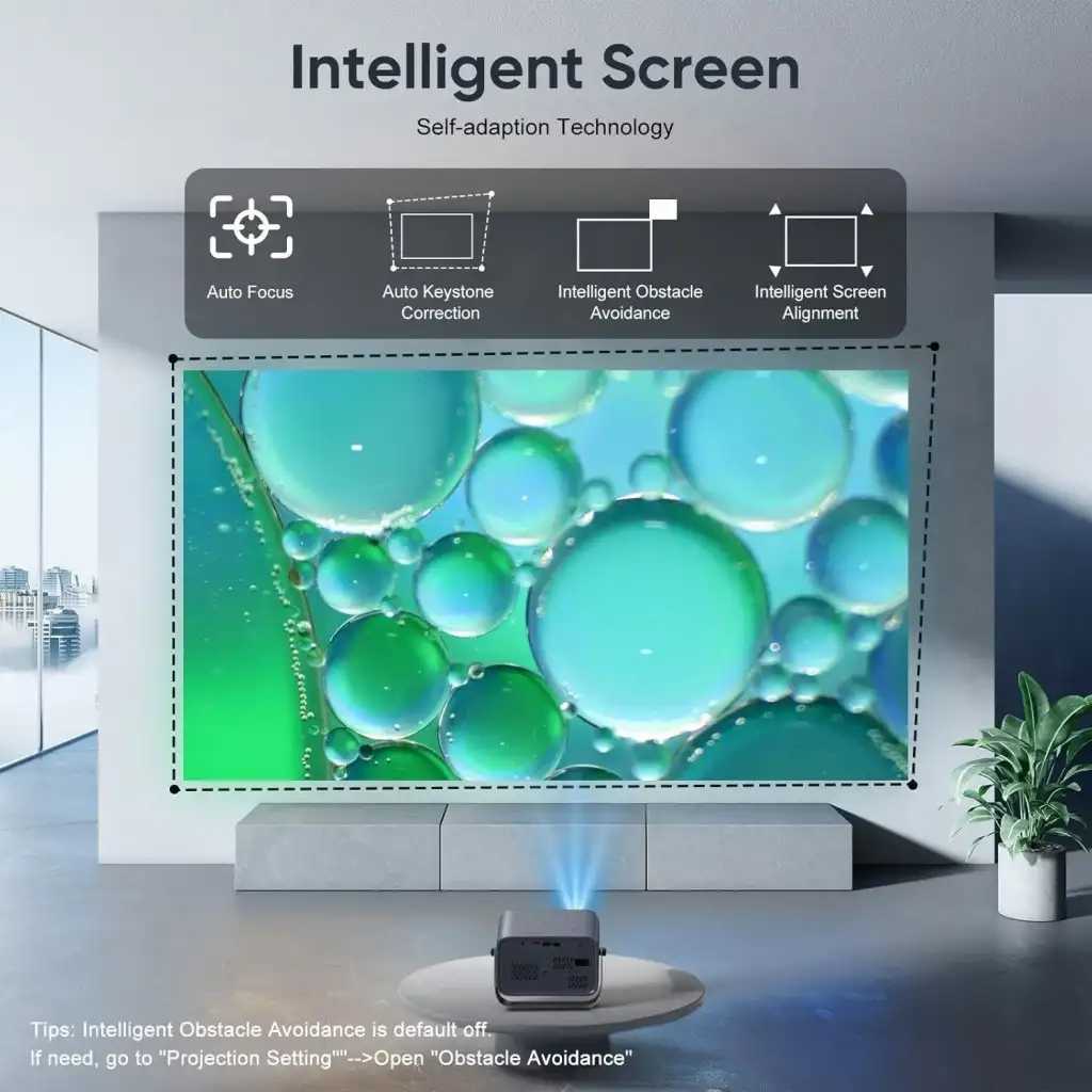 【Otomatik Odaklama/Anahtar Taşlama ve %100-%50 Yakınlaştırma】Bu mini projektör, ±50° 4D otomatik düzeltme ve otomatik odaklama işlevine sahiptir, düzensiz görüntüleri otomatik olarak dikdörtgen olanlara ayarlar ve çaba harcamadan keskin resimler görüntüler. Bozulmasız %100-50 Yakınlaştırma, resmin doğru boyuta ayarlanmasını sağlar.