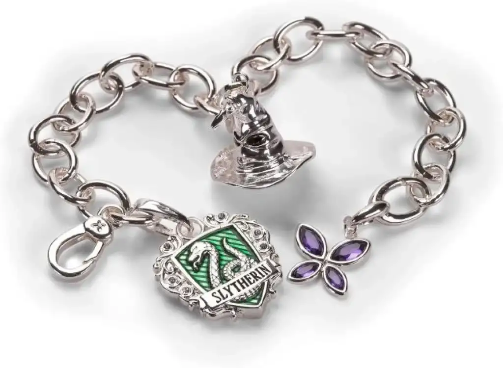 Üç özel takı içerir: Slytherin Binası Arması, Seçmen Şapka ve Lumos kelebeği.