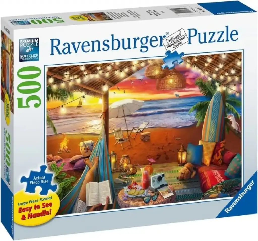 Bu 500 parçalık Geniş Format Yapboz Hakkında: "Rahat Cabana"mızda tembelce dinlenirken deniz meltemlerinin dertlerinizi alıp götürdüğü bir ortamda gevşeyin!