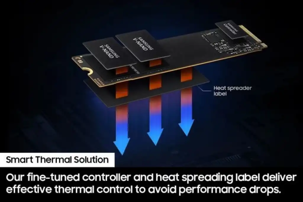 AKILLI ISIL KONTROL: Artık sistemi aşırı ısıtmadan performansı artırabilirsiniz. Samsung'un ince ayarlı kontrolörü ve ısı yayma etiketi, proje sırasında ani performans düşüşlerini önlemek için etkili bir termal kontrol sağlar. İşler yoğun olsa bile soğutma sağlar, böylece zor kazandığınız kontrol noktaları korunur.