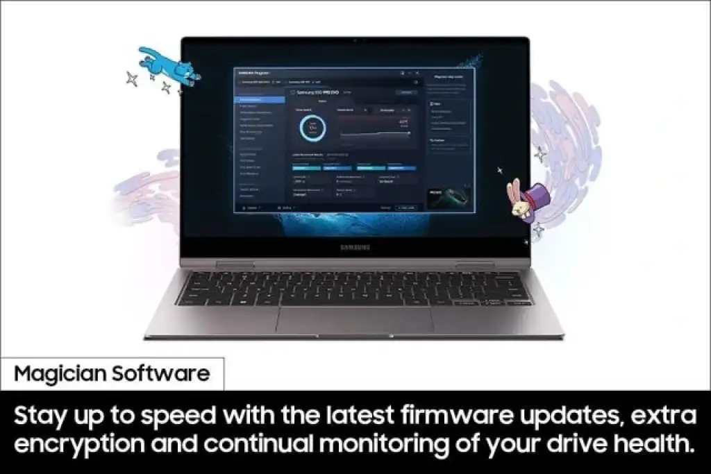 MAGICIAN YAZILIMI İLE HER ZAMAN GÜNCEL: Bu bir hokus pokus değil. 990 EVO SSD'niz, her zaman güncel Magician Yazılımı ile yeni gibi performans gösterir. En son ürün yazılımı güncellemeleri, ekstra şifreleme ve sürücünüzün sürekli sağlığının izlenmesiyle güncel kalın; kusursuz çalışır.