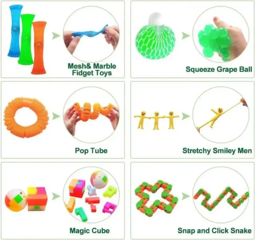 Saygın kalite, Güvenli - Yüksek kaliteli ABS malzemeden yapılmış, toksik olmayan ve kokusuz olan fidget oyuncak seti, ASTM/CPC/EN71 dahil olmak üzere Avrupa ve Amerika Oyuncak Güvenliği Standartlarını karşılar. Otizmli veya DEHB'li çocuklar ile OKB'si veya yüksek stresi olan kişiler için güvenli bir kullanım sunar, aynı zamanda dikkatlerini odaklamalarına ve kaygılarını huzurlu bir şekilde hafifletmeye yardımcı olur.