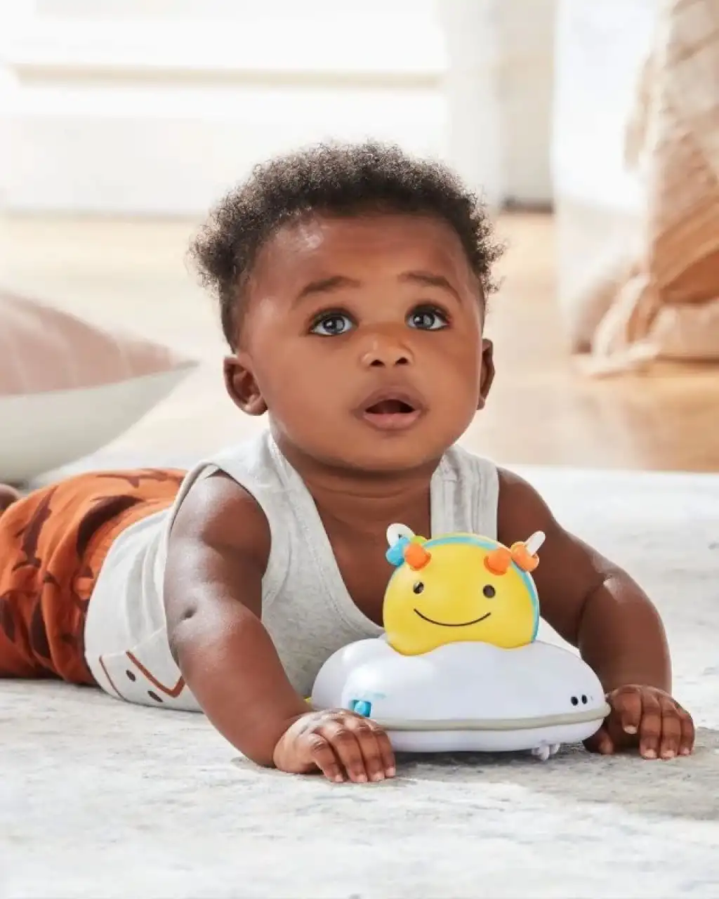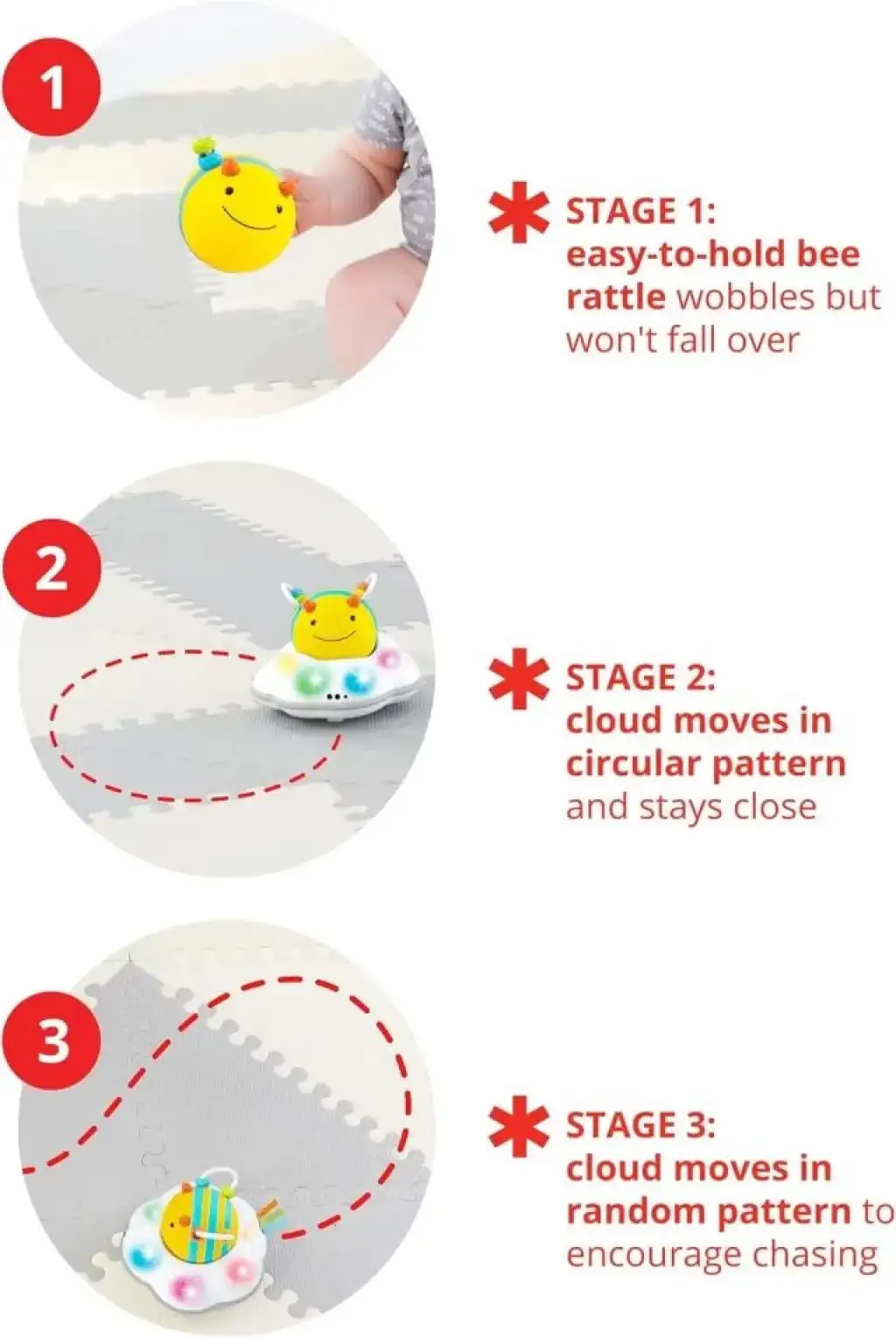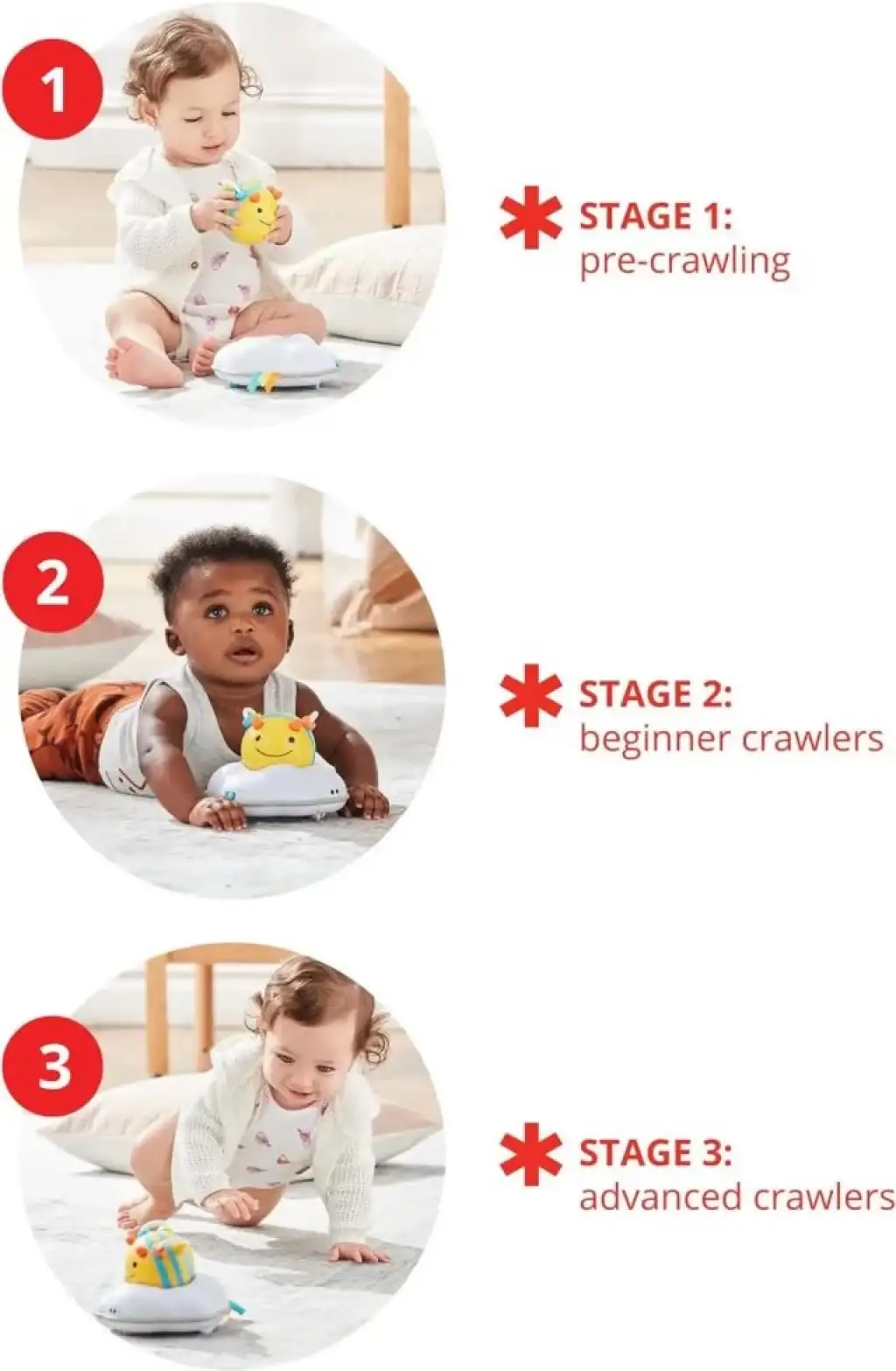 Üç aşamada bebeğinizle birlikte büyüyecek şekilde tasarlanan motorlu emekleme oyuncağımız renkli ışıklar, enerjik melodiler ve tatlı uğultu sesleriyle küçükleri emeklemeye zorlar ve onları emeklemeyi öğrenmeye teşvik eder.