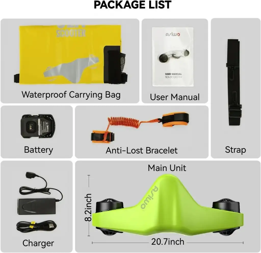 Taşınabilir küçük boyut ve büyük enerji. 3,5 kg'lık toplam ağırlık, seyahat sırasında herhangi bir sorun yaşamadan taşımayı kolaylaştırır, çift iticiler su altındaki dünyayı keşfetmek için 8 kgf itme gücü sağlar.