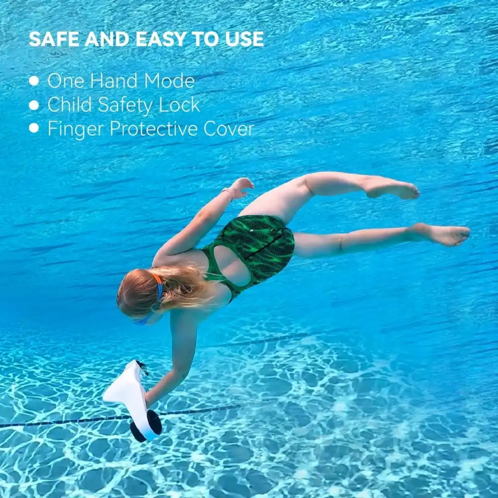 Güvenli bir aralıkta kolay kullanım. Sıfır kaldırma kuvveti elde etmek için bir şamandıra ile donatılmıştır ve pervaneler parmakların kazara yaralanmasını önlemek için güvenli bir koruyucu ağ ile tasarlanmıştır.