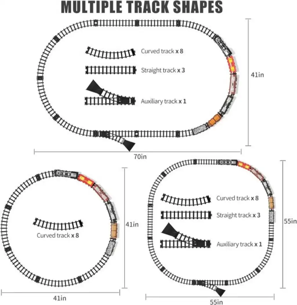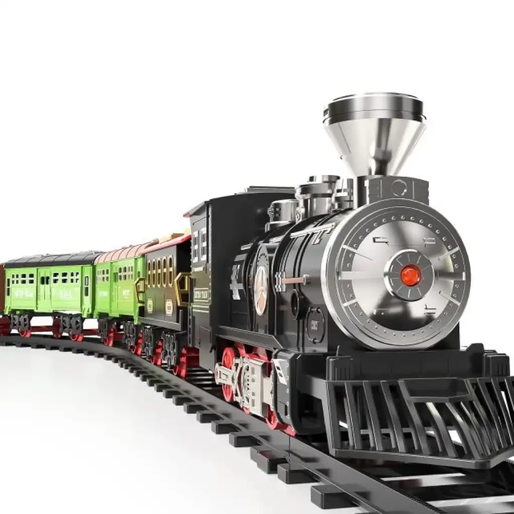 SAYISIZ AKSESUAR İLE TAM BİR SET – Bu motorlu tren oyuncağı, klasik bir buhar motoru, 2 yolcu vagonu, bir kömür vagonu, 8 adet kavisli ray ve 4 adet düz ray içerir. Demiryolu setini çalıştırın ve keyifli bir yolculuğun tadını çıkarmaya hazırlanın. Palet düzeninin boyutu: 69,3'' (L) x 41,7'' (G). MONTAJI VE OYNAMASI KOLAY - Modüler ray parçalarını kendi demiryolu şeklinize ve düzeninize göre birleştirin, tren motorunuzu ve en sevdiğiniz arabaları kılavuz rayın yardımıyla raylara yerleştirin (önce tren setini kılavuz rayına koyun, sonra kaydırın tüm tekerleklerin rayda olduğundan emin olmak için önceden kurduğunuz yola getirin), kondüktör şapkanızı takın ve düdüğü çalın! Eğlenme zamanı! GERÇEKÇİ FAR, SESLER VE DUMAN – Elektrikli tren modelinde ayrıca özgün LED ışık ve gerçekçi sesler bulunur. Ayrıca baca arkasında bulunan hazneye su ilave edebilirsiniz, böylece bacadan gerçek buhar çıkacaktır. Lokomotif Motoru 4 adet AA Pil gerektirir, dahil değildir (Yeni sürüm şarj edilebilir pille birlikte gelir, iki sürüm rastgele gönderilir). BİRÇOK DURUM İÇİN İDEAL BİR HEDİYE - Şenlikler sırasında masa için bir oval veya Noel arifesinde ağacınızın etrafında bir daire oluşturabilmesini sağlamak için bol miktarda ray ile ve ayrıca küçük kız veya erkek çocuklarınız için sayısız saatlerce eğlence sağlar. günlük yaşamda farklı şekillerde izler. Bu, herkesin almaktan heyecan duyacağı harika bir hediye. GÜVENEBİLECEĞİNİZ KALİTE - Tren yapım seti Ftalat ve BPA içermeyen malzemelerden yapılmıştır. ABD oyuncak CPSIA ve ASTM testini geçti. Kaliteye, güvenliğe ve mükemmelliğe sıkı sıkıya bağlılığımız, ailenizin saatlerce eğlenmesini sağlar.