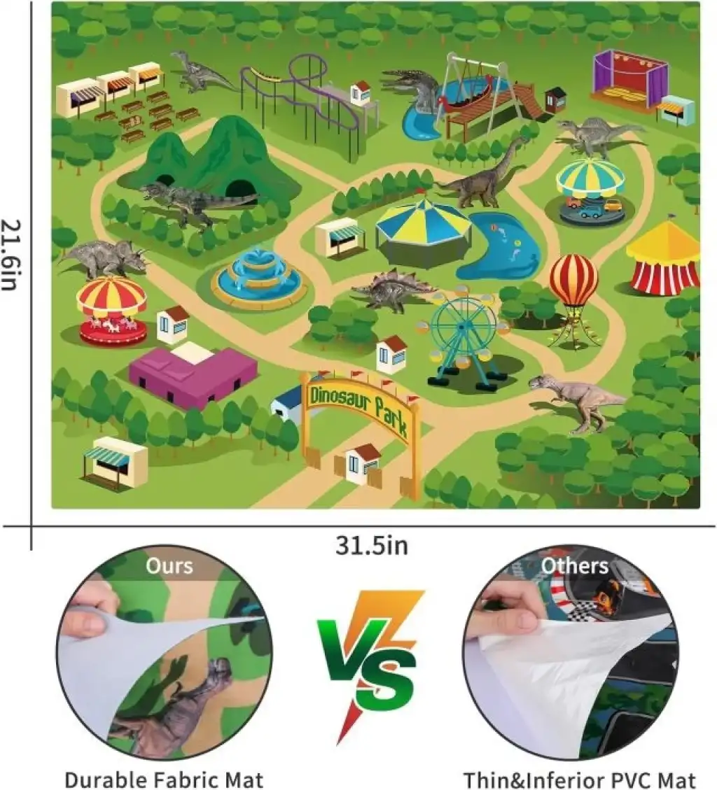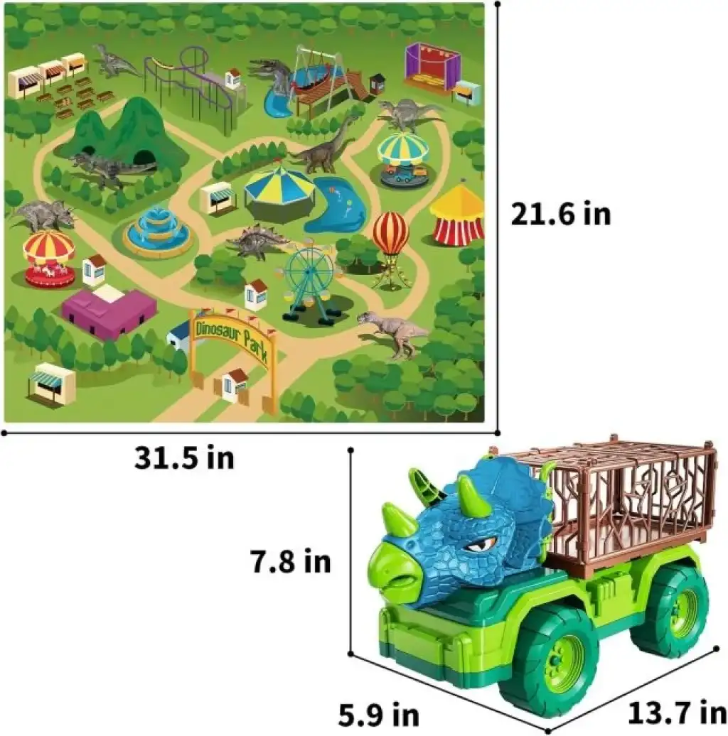 Dayanıklı ve Güvenli – Tüm dinozorlar ve kamyonlar, dayanıklı ve BPA plastikten yapılmıştır; paspas, ince PVC yerine yumuşak dokunmamış kumaşlardan yapılmıştır. Canavar kamyonun daha dengeli olmasını sağlayan dört büyük tekerleği var.