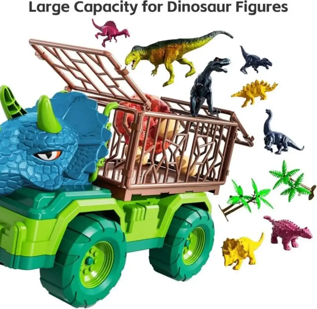 Büyük Dinozor Taşıma Kamyonu – Kamyon, daha havalı görünmesini sağlayan simüle edilmiş bir T-rex kafası ile donatılmıştır. Ve büyük kafes, daha fazla dinozor yakalamasını sağlar. Kamyon boyutu: 35*15*20cm.
