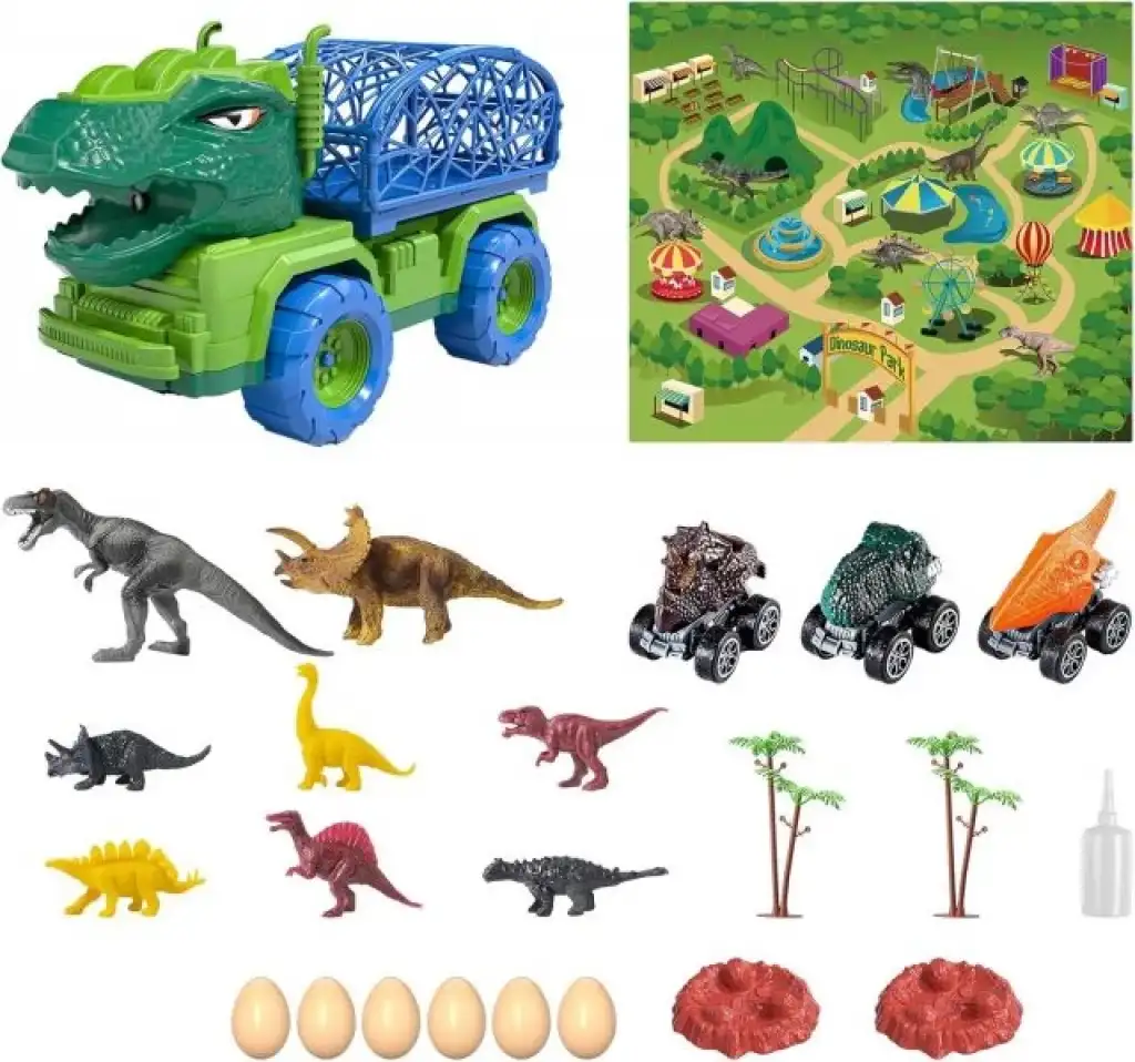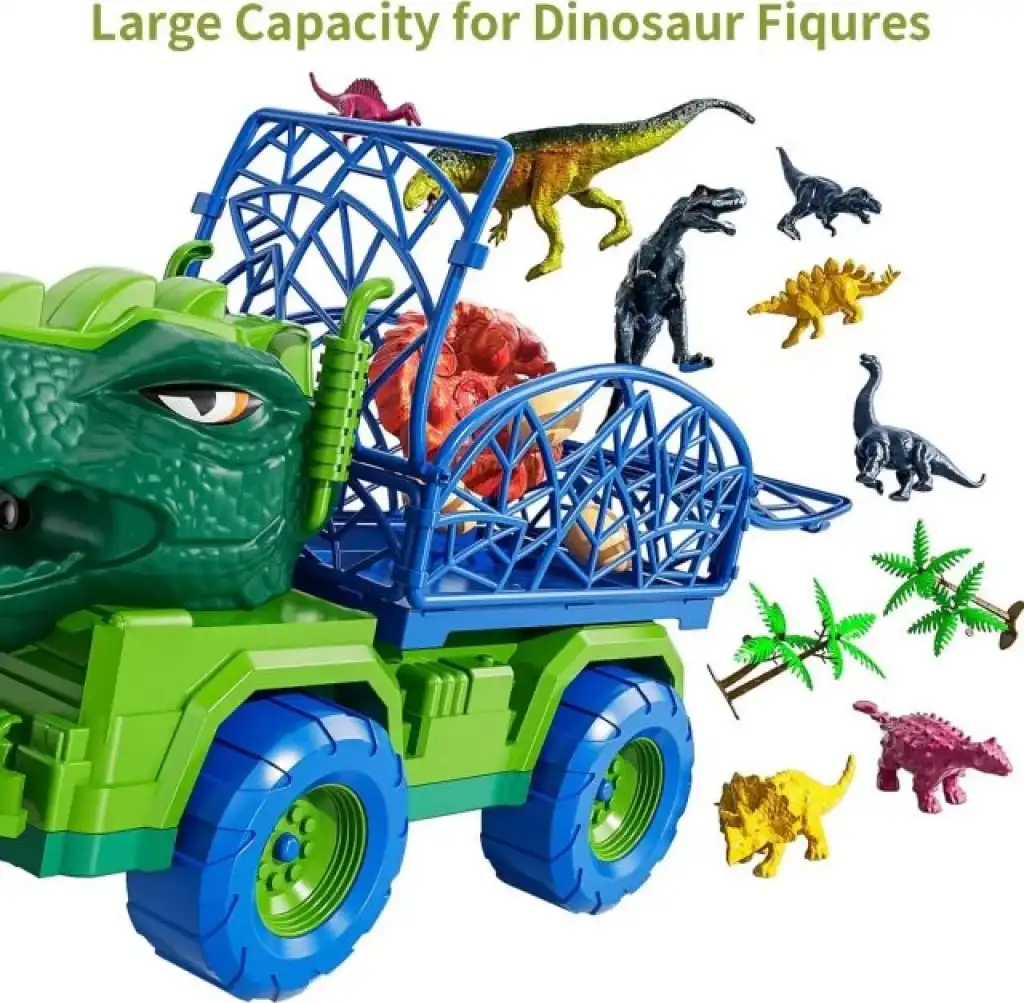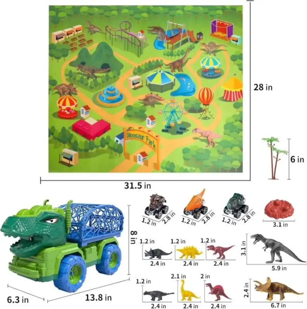 Büyük Dinozor Taşıma Kamyonu – Kamyon, daha havalı görünmesini sağlayan simüle edilmiş bir T-rex kafası ile donatılmıştır. Ve büyük kafes, daha fazla dinozor yakalamasını sağlar. Kamyon boyutu: 35*15*20cm. 8 Gerçekçi Dinozor Figürü – Bu oyun setinde 2 orta boy Tyrannosaurus dinozor ve 6 mini dinozor daha bulunur. Tüm dinozorlar kafese yakalanabilir. İpuçları: Daha büyük dinozorları yakalamak istiyorsanız, lütfen önce kafesin ortasındaki bariyeri kaldırın. Dinozor Temalı Oyun Matı - Bir dinozor parkı aktivite oyun matı, çocukların kendi dinozor dünyalarını kolayca inşa etmelerine yardımcı olur. Mat ölçüsü 70*80cm olup 2-3 çocuğun yerde oynayabileceği büyüklüktedir. Dayanıklı ve Güvenli – Tüm dinozorlar ve kamyonlar, dayanıklı ve BPA plastikten yapılmıştır; paspas, ince PVC yerine yumuşak dokunmamış kumaşlardan yapılmıştır. Canavar kamyonun daha dengeli olmasını sağlayan dört büyük tekerleği var. Çocuklar İçin Mükemmel Hediye - Araba oyuncaklarını ve dinozorları seven çocuklar için harika bir hediye olacak. Doğum günü partisi, Noel veya diğer tatillerde 3 4 5 6 7 yaşındaki kız ve erkek çocuklar için uygundur.