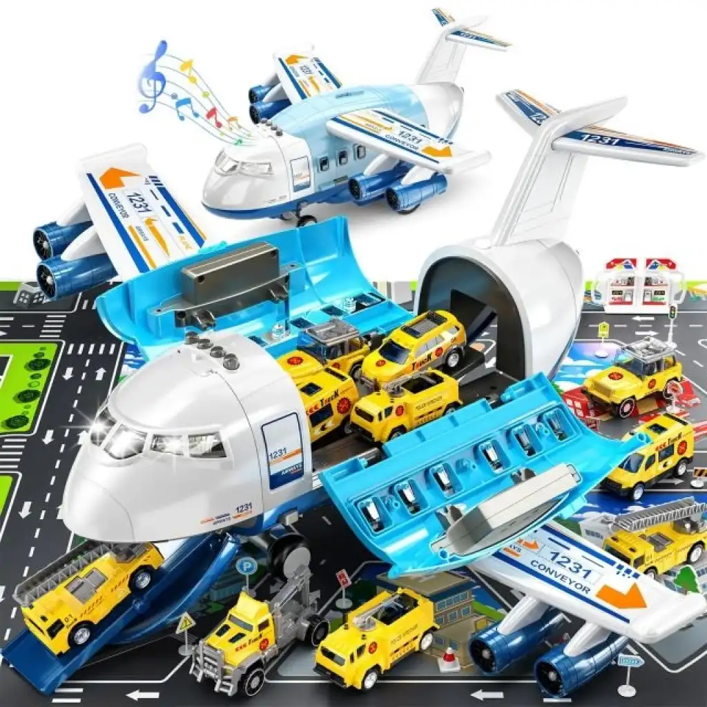 Süper Değerli Oyun Seti - Toplam 20 parça oyuncak setinde büyük bir uçak ve 6 mini iş makinesi/(itfaiye aracı) ile diğer aksesuarların kombinasyonu, çocuğunuza ayrı bir oyundan daha fazla eğlence getirecek. Şimdi uçak ve arabaların çifte eğlencesini deneyimleyelim!