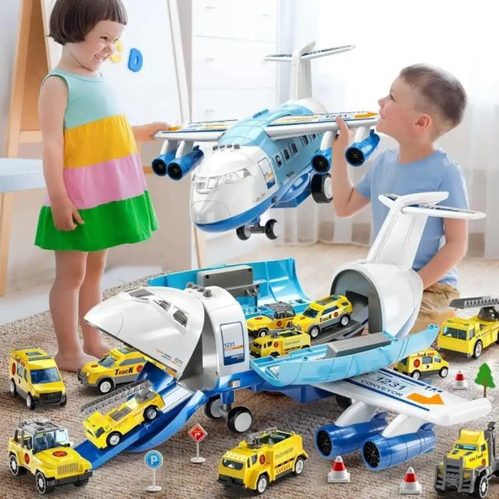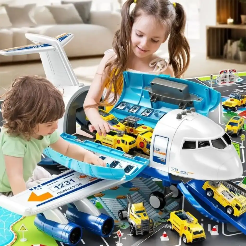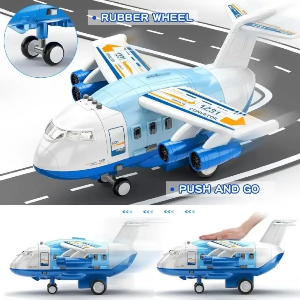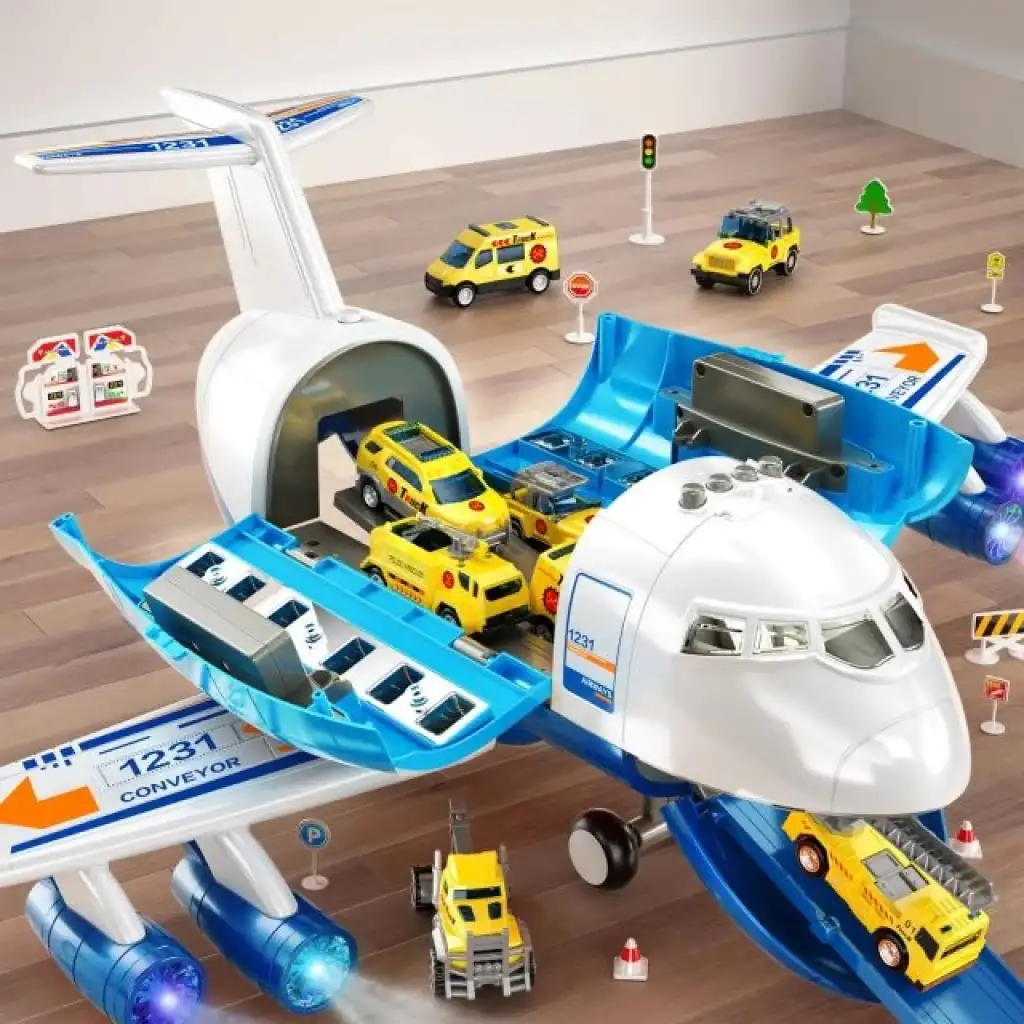 Süper Değerli Oyun Seti - Toplam 20 parça oyuncak setinde büyük bir uçak ve 6 mini iş makinesi/(itfaiye aracı) ile diğer aksesuarların kombinasyonu, çocuğunuza ayrı bir oyundan daha fazla eğlence getirecek. Şimdi uçak ve arabaların çifte eğlencesini deneyimleyelim! Bol İşlevler - Uçağımızda, araçların kabinden dışarı kaymasına izin veren iki kızak rayı vardır ve uçağın dışında, arabaların ileri veya geri kaymasını kontrol etmek için kalkış kontrol düğmesi vardır. Atalet kayma tasarımı, uçağın itildikten sonra düz yüzeylerde uzun mesafe süzülmesini sağlar. Eşsiz Özellikler - Rakiplerle karşılaştırıldığında uçağımız, onu daha çok gökyüzünden geçen gerçek bir uçak gibi yapan simüle edilmiş buhar jeti işlevine sahiptir. Kalkış ses efektine eşlik eden sis spreyi oluşturmak için uçağın ön kısmına basın. Kabinin üzerindeki dört düğme farklı müzikler ve ışıklar yaratıyor. Gerekli 3x1,5V AA piller dahil değildir. Arabalar, Barikatlar ve Harita - 6 alaşımlı araba, sağlam ve dayanıklı, çocukların güvenliğini sağlayan yüksek kaliteli metal ve plastik malzemelerden yapılmıştır. Etkinlik sahne haritasına farklı barikatlar koyun, çocuklar üzerinde araç ve uçak oynayabilir ve trafik bilgisini deneyimleyebilir. Çeşitli Durumlar İçin İdeal Hediye - 3 4 5 6 yaşındaki kız ve erkek çocuklar için doğum günü, Çocuk bayramı, Noel günü vb. için mükemmel bir hediye. Çocuğun pratik yeteneklerini ve düşünme yeteneklerini geliştirebilen, hayal gücünü ve yaratıcılığı teşvik edebilen, tam olarak aradığınız en iyi seçimdir.