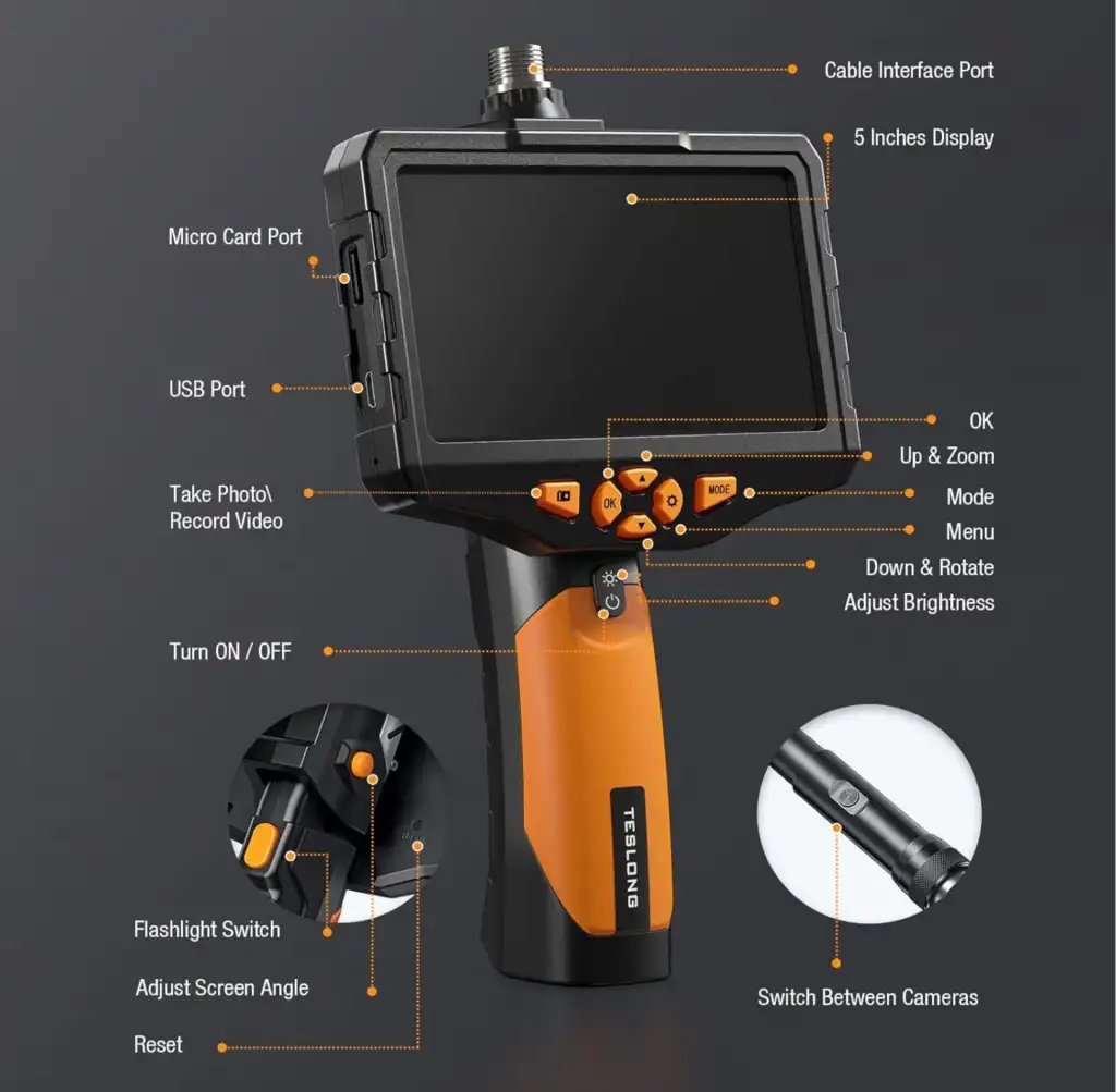 Teslong NTS300 Çift Lensli 360 Derece Dönüşlü Muayene Kamerası 8.5mm - 5 Inc - 5m Kablo