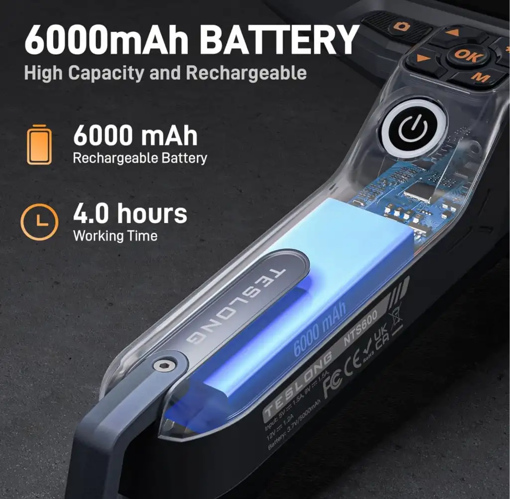 • 6000mAh Şarj Edilebilir Pil 5 Saate Kadar Sürer
