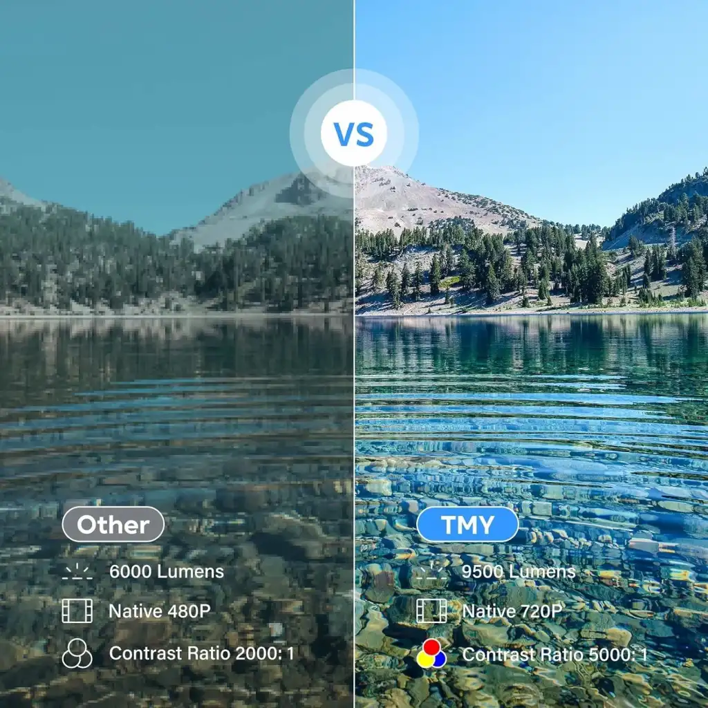 【Yükseltilmiş 9500 Lümen HD Video Projektörü】 İhtiyaçlarınızı daha iyi karşılamak için V08 ev projektörünü en yeni 9500 Lümen LED ışık kaynağımızla yükselttik. V08 akıllı projektör, 1080P Full HD desteğiyle yerel 720P çözünürlüğe (1280x720) sahiptir. En yeni 3LCD renk kalibrasyonu ve ayarlama teknolojisi, diğer mini projektörlere kıyasla daha karmaşık renk ayrıntılarını yeniden üretmek için çalışarak müşterilerimize dinamik ve canlı renklere sahip 1080P HD yansıtılan görüntü kalitesi sunar.