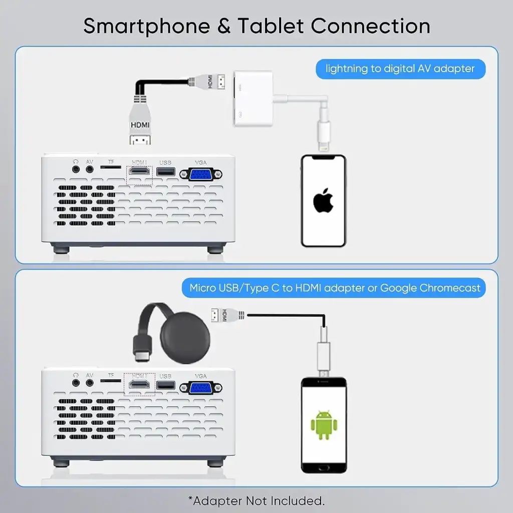 【Kapsamlı Bağlantı Kullanılabilirliği】Yerleşik HDMI, VGA, AV, USB, 3,5 mm kulaklık bağlantı noktası ve TF kart yuvasının yanı sıra dahil edilen AV ve HDMI kablolarıyla bu taşınabilir projektör, aşağıdakiler de dahil olmak üzere çok çeşitli giriş kaynakları için mükemmel çözümdür: ancak bunlarla sınırlı olmamak üzere TV Stick/Kutu, Oyun Konsolları, PC'ler, Akıllı Telefonlar, Tabletler, Dizüstü Bilgisayarlar, DVD oynatıcılar, TF kartları ve USB flash sürücüler. 100" ekranlı V08 telefon projektörümüzün kullanımı kolaydır ve büyük bir değer sağlar.