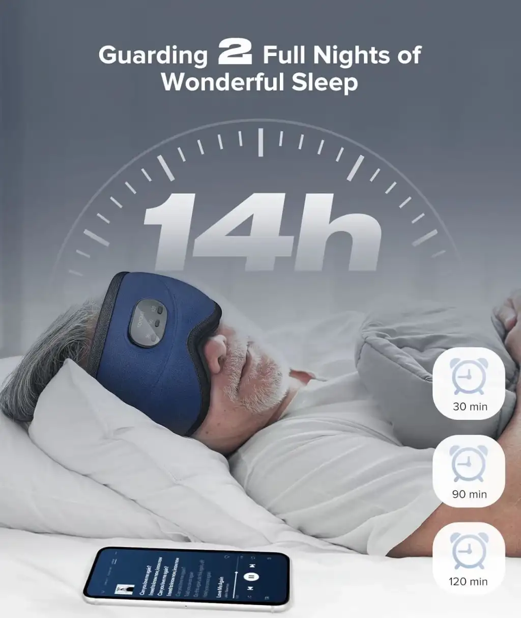 TOPOINT Sleep Mask, Sleep Headphones Wireless Bluetooth with White Noise, 3D Eye Mask 100% Light Blocking for Back/Side Sleepers Men Women