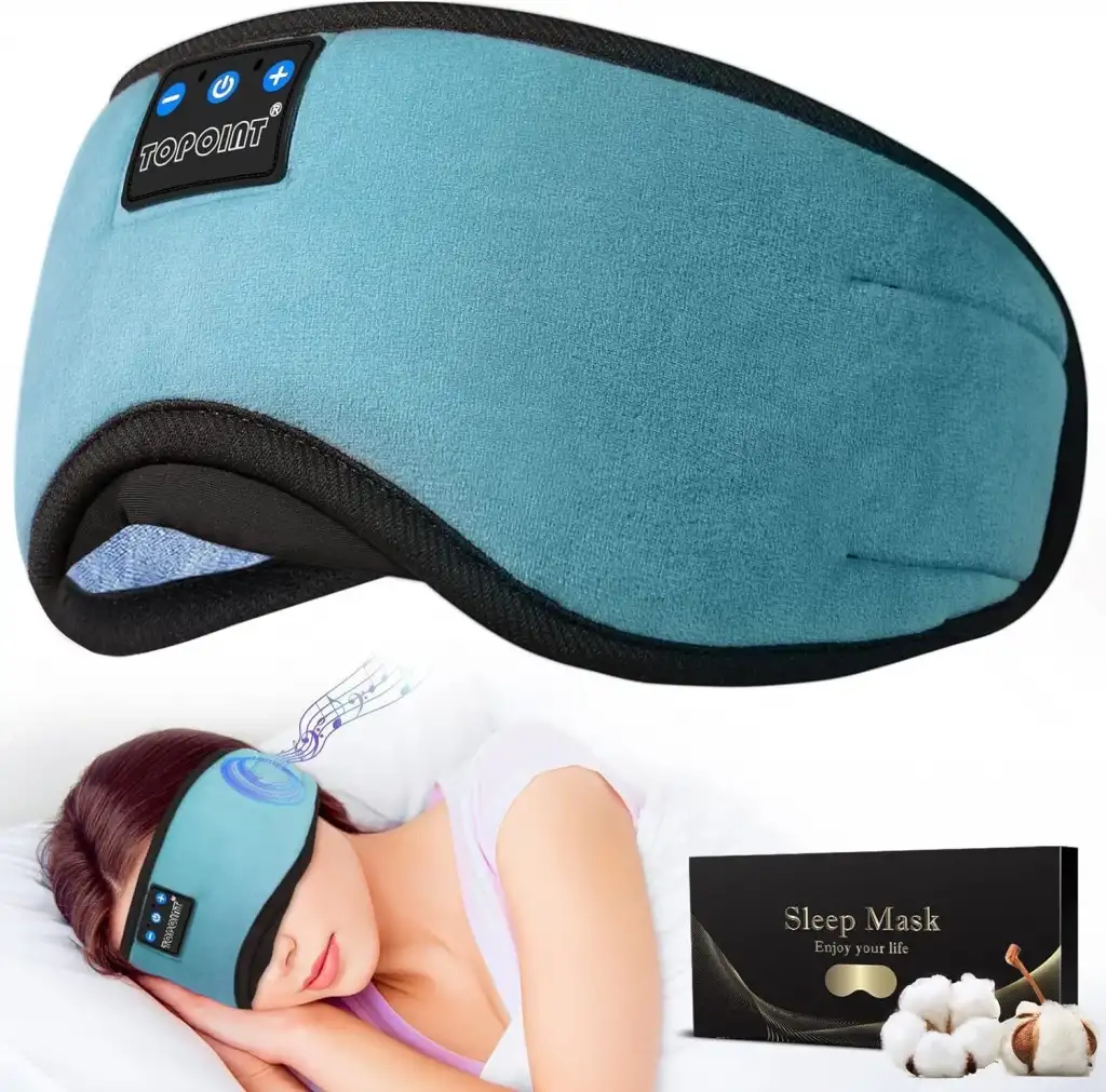 TOPOINT Sleep Headphones, Sleeping Headphones Bluetooth Sleep Mask with Bluetooth Headphones, Aid Sleep Light Blackout Sleeping Eye Mask Headphones for Sleeping Side Sleepers Women Girls