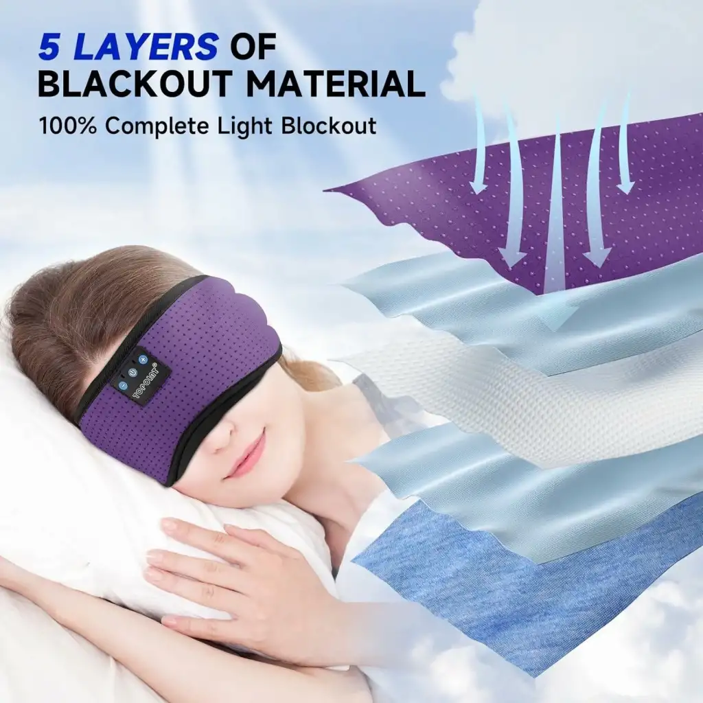 ???% ????? ???????? - Bu Bluetooth uyku maskesi ışık engelleme, esnek kemik tasarımı ve ayarlanabilir kafa bandıyla birleştirilmiş 5 katmanlı etkili ışık engelleyici malzemeyle yan uyuyanlar için tasarlanmıştır. İster yan, ister sırtüstü veya yüz üstü uyuyor olun, ışığı her açıdan tamamen yalıtır! Gece vardiyasında çalışanlar, uzun mesafe uçuş yapanlar veya ışığa duyarlı olanlar (uykusuzluk çekenler) için idealdir.