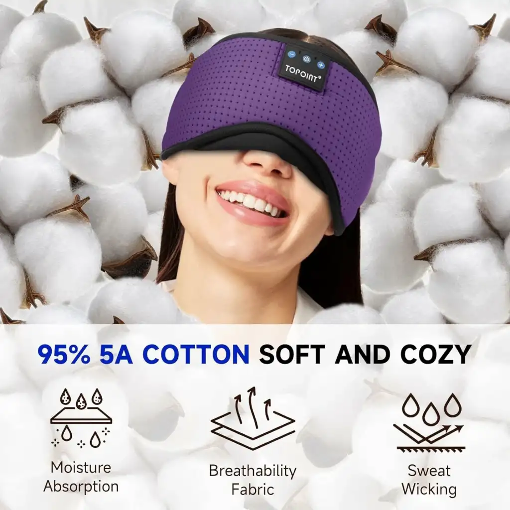 TOPOINT Sleep Mask Headphones Bluetooth Wireless 5.2, Breathable Cotton Eye Mask for Sleeping Side Sleepers Travel Music Headsets with Microphone Handsfree Men Women