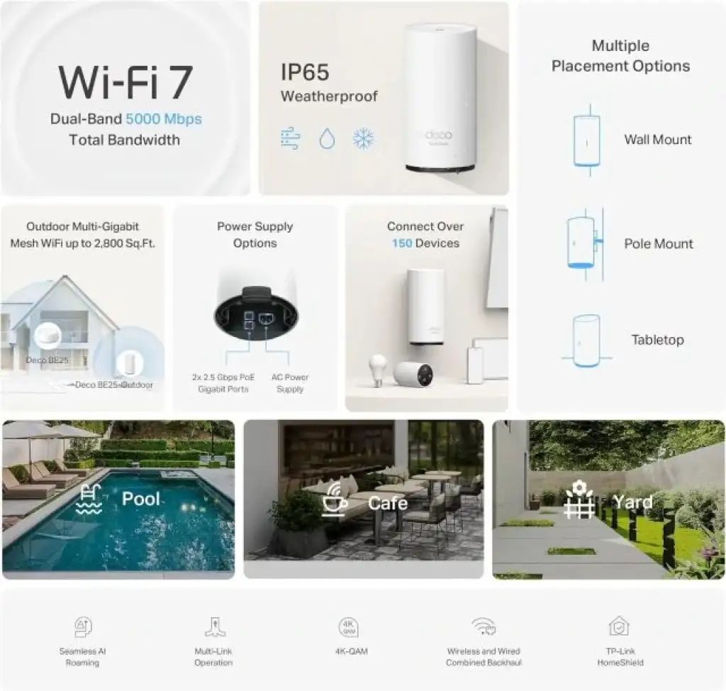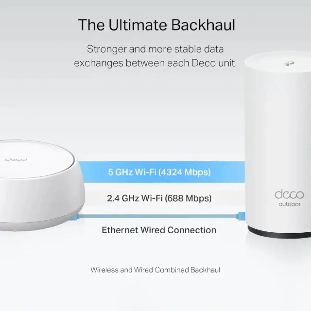 2 x 2,5G WAN/LAN Portu ve Kablolu Bağlantı - Her Deco ünitesi, yüksek performanslı kablolu cihazlar ve çok gigabaytlı internet hizmetleri için yüksek hızlı bağlantı sunan iki adet 2,5 Gbps WAN/LAN portu ile donatılmıştır. § TP-Link'in kendi geliştirdiği teknoloji sayesinde Deco BE25, eş zamanlı kablosuz ve kablolu bağlantı desteğinin yanı sıra Wi-Fi 7 MLO ile birleşerek daha geniş ve daha kararlı bağlantılar sunar.