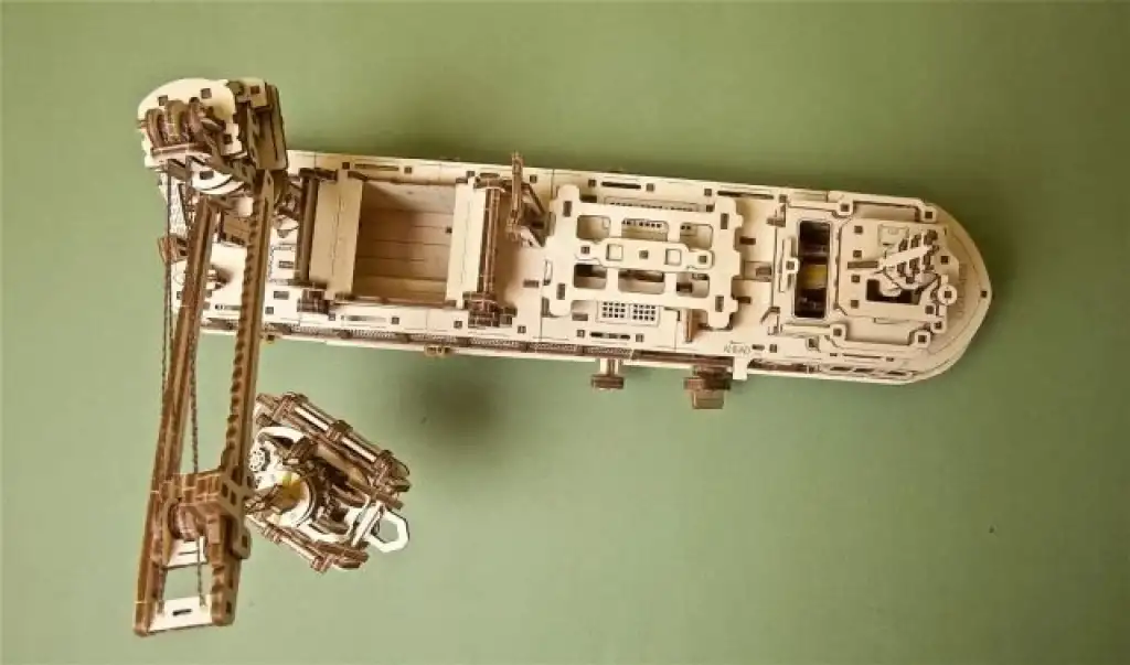 Bu inanılmaz gemi modelinin baş mühendisi, en iyi kaşifi ve kaptanı olun. Tıpkı yetişkinler için diğer UGears kendin yap kitleri ve çocuklar için 3D yapbozlar gibi, bu ahşap yapboz seti ilgi çekici ve ilham verici bir uygulamalı deneyimdir. Yapıştırıcı veya ekstra alet gerekmez. Bu model gemiyi kendi başınıza veya arkadaşlarınızla veya ailenizle birlikte monte edin. Yetişkinlere yönelik tüm yapım setlerimiz bir kez monte edildikten sonra lastik bantlı motorlarla çalışır, bu nedenle pil gerekmez. Araştırma gemisi mekanik modeli, ambar ve makine dairesine bakmanıza ve onu neyin hareket ettirdiğini görmenize olanak tanıyan benzersiz bir tasarıma sahiptir. Model, manuel olarak geçiş yapabileceğiniz üç hareket moduna sahiptir: ileri, dönüş ve otomatik. Bu muhteşem ahşap yapboz, her ev veya ofis için etkileyici bir dekoratif unsura dönüşüyor. Sofistike UGears inşaat kitlerinin gururlu üreticisi ve sahibi olun. Tekne maketi yapmak sadece zorlu değil, aynı zamanda son derece ödüllendirici. Sevdiklerinize bu mekanik şaheseri yapma fırsatı verin.