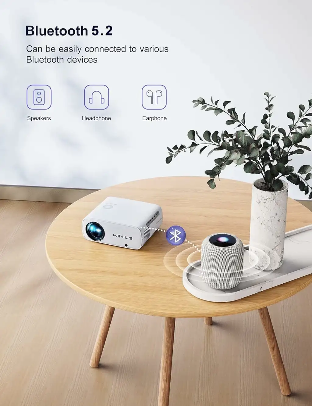 WiMiUS Projector with WiFi and Bluetooth, Native 1080P,Movie Projector,Projector Outdoor,4K Supported,Home Theater,HDMI,5G WiFi,Portable Projector,Gift, WiMiUS S26 Compatible with iOS/Android/TV Stick