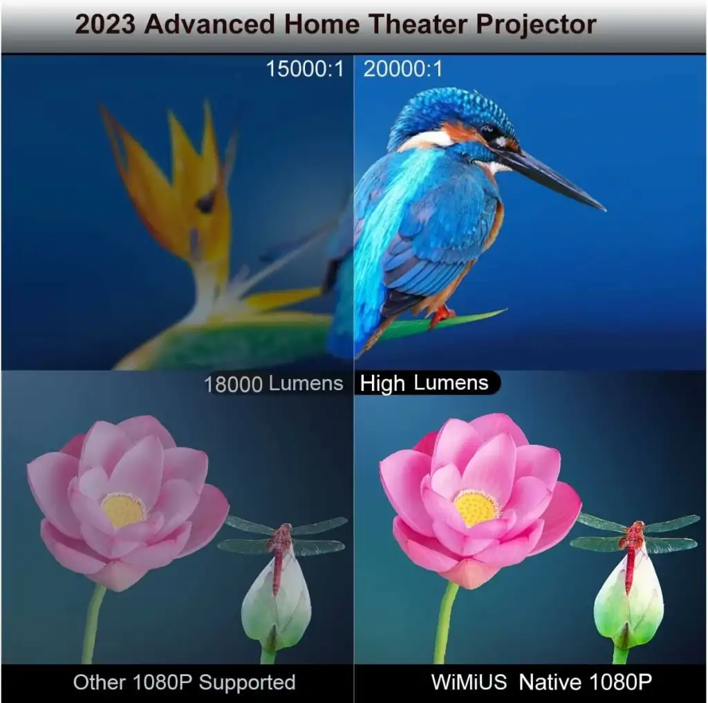 1. WiMiUS WiFi ve Bluetooth projektör, gelişmiş Alman LED ışık kaynağını, yüksek kaliteli malzemeleri ve hassas üretim sürecini benimser. Benzer değerdeki projektörlerden %50 daha parlaktır .