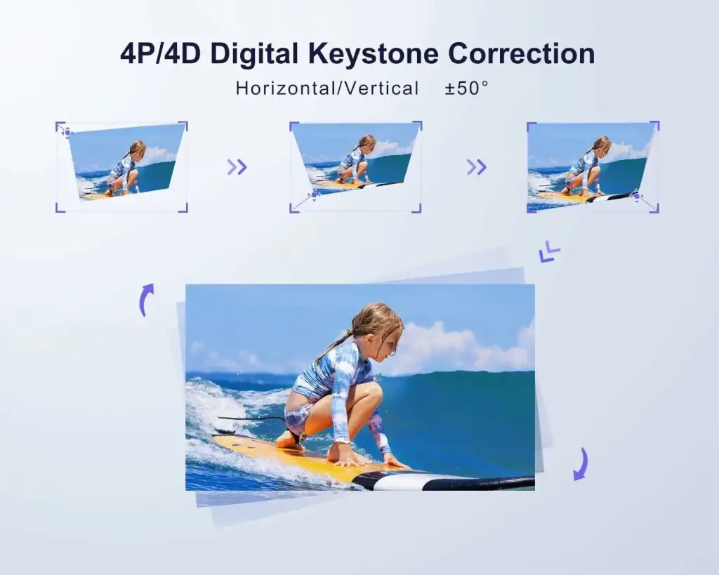 Çözünürlük gerçek 1080P'dir (1920*1080) ve akıllı telefona bağlandığında 4K videoları görüntüleyebilir. Aynı değere sahip diğer yerel 1080P projektörlerle karşılaştırıldığında P60 akıllı projektörümüz 4 kat daha nettir.