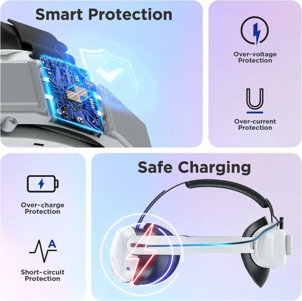 VR Oyun Süresini Uzatın: Pil elit kayışı tak ve çalıştır tasarımını benimser ve VR dünyasına dalmışken Quest 3 kulaklığınızı pil anahtarını açarak doğrudan şarj etmenize olanak tanır. Bu, kulaklığın pil ömrünü yaklaşık 2-3 saat uzatır. Artık şarj etmek için kulaklığı çıkarmanıza gerek yok, bu da oyun deneyiminizin keyfini tam olarak çıkarmanızı sağlar.
